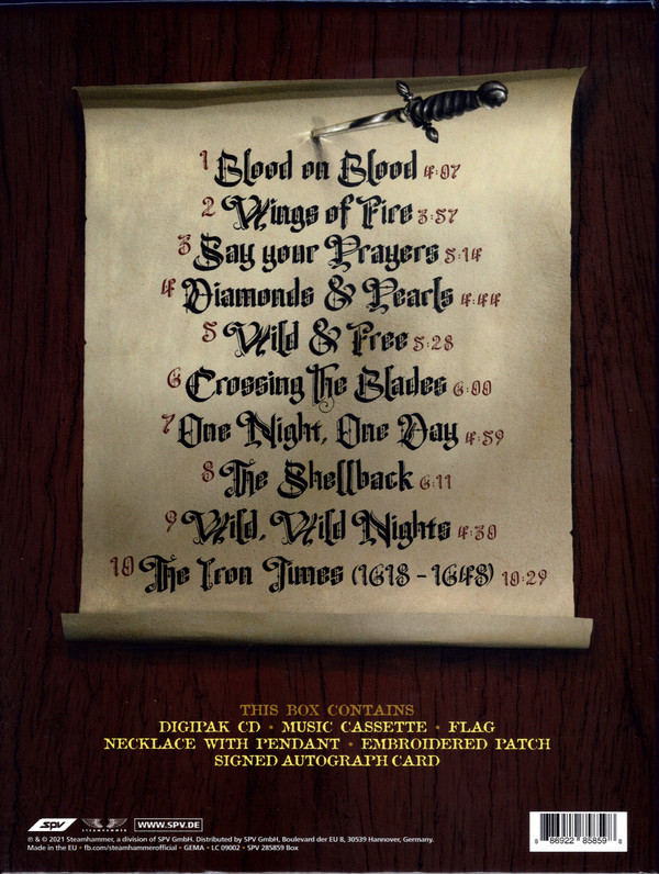 Несмотря на эти лирические амбиции, «Blood On Blood» также включает в себя два «рок-номера для вечеринок», как любит их называть Рольф: «Wild & Free» и «Wild, Wild Nights», которые призваны доставлять удовольствие, в точности выполняя свою миссию. И, наконец, что не менее важно, есть «The Shellback», трек в типичном стиле RUNNING WILD, который начинается с кельтского вступления, пересматривающего атмосферную морскую тему их классической песни «Black Hand Inn» 1994 года, приквела этой морской истории. Не менее характерно для группы, в которую, помимо Рольфа, гитариста Питера Джордана и басиста Оле Хемпельмана, с 2019 года входит барабанщик Майкл Вольперс, который исполнил все барабанные партии на новом диске - это и ведущий сингл «Diamonds And Pearls» (включая лирическое видео), и заглавный трек, кстати, это первый номер, который Рольф написал для нового альбома.