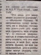 Толя, Роман, а по этому вопросу вообще никакой конкретики. Несколько лет назад рылся в Фэйсбуке в поисках интересной информации из истории группы и редких фотографий и наткнулся впервые на спор двух англоязычных субъектов по поводу версии Rock and Roll to Death на First Blood, Last Cuts, один утвержал, что на сборнике взято демо с её соло, второй говорил, что нет Блэкки всё переписал для сборника. Оба при этом ссылались на промо-интерью к выходу Still Not Black Enough в котором Лоулесс пространно рассуждал на тему зачем было переписывать трек, который только-что выходил на сборнике и включать его в номерной альбом. Стало интересно, поискал какие-либо более весомые косвенные подтверждения ничего не нарыл. А второй раз эта тема неожиданно всплыла в комментариях к ролику на Ютубе. Вот собственно и всё.